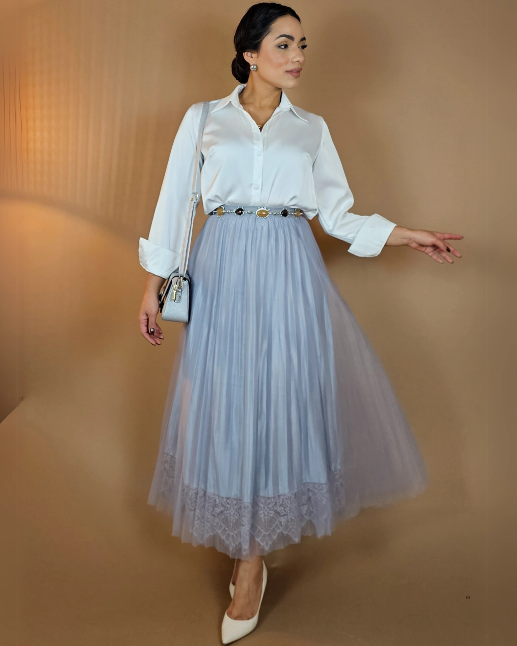 Eleve seu visual com a elegância atemporal do tule e da renda. Escolha a saia que valoriza você em cada movimento!